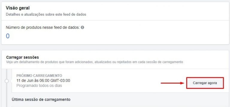Caso o seu catálogo tenha gerado algum erro na leitura do arquivo, resultando em “Falha ao carregar”, pode ser que o link do XML esteja errado, sem produtos ou até mesmo neste exato momento em que criou o arquivo, por algum motivo, ficou inacessível para o robô do Facebook onde não conseguiu ler o arquivo. A seguir, iremos mostrar os procedimentos que deve realizar para enviar novamente.